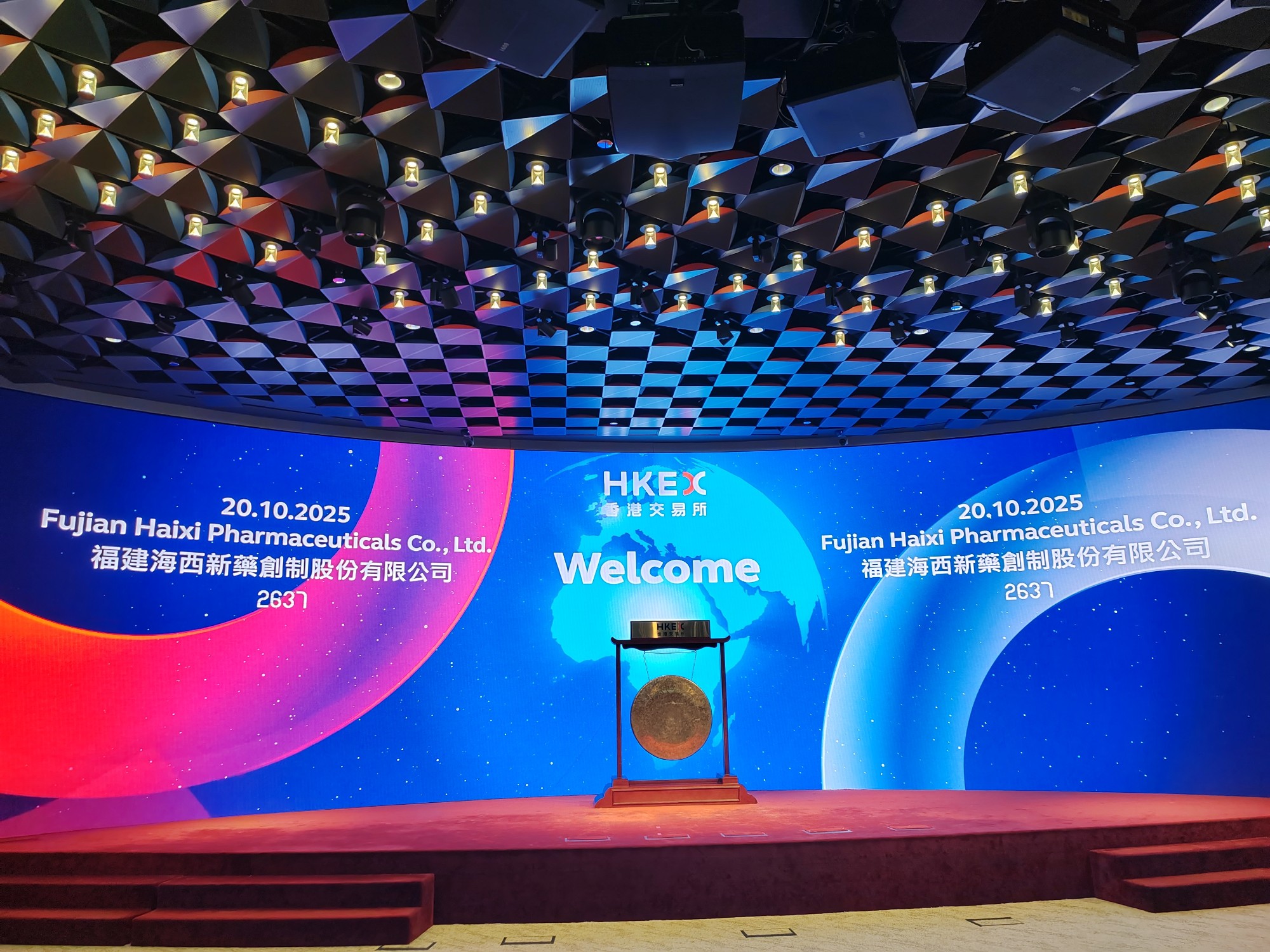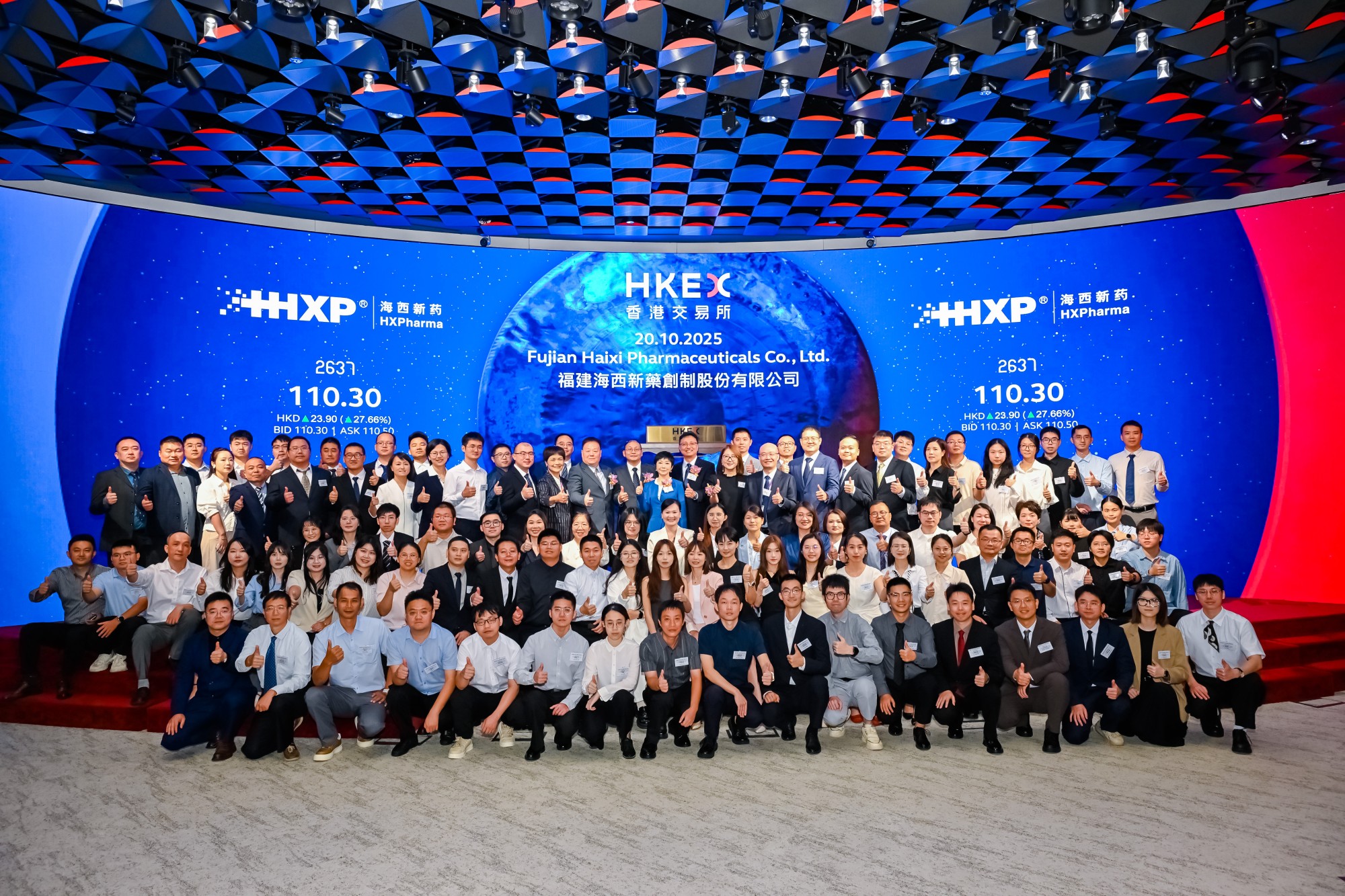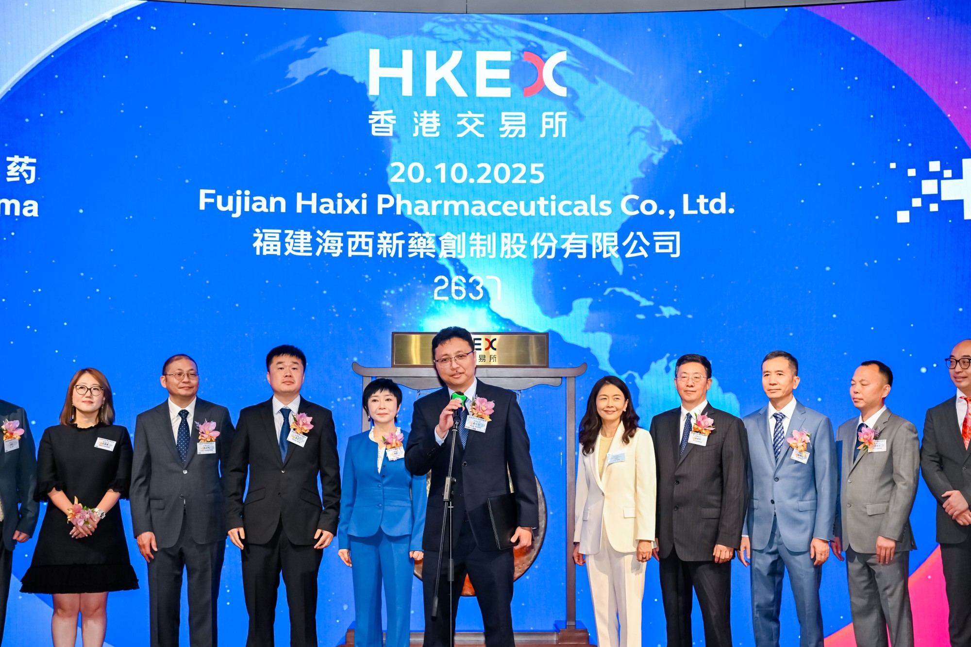 10 月 20 日,海西新藥首次公開發(fā)行 H 股上市儀式在香港聯合交易所成功舉行,公司正式登陸主板,證券簡稱:海西新藥,股份代碼:02637.HK,以創(chuàng)新藥企姿態(tài)亮相國際資本市場,開啟「仿製藥穩(wěn)基賦能、創(chuàng)新藥領航突破」的全球化發(fā)展新征程。